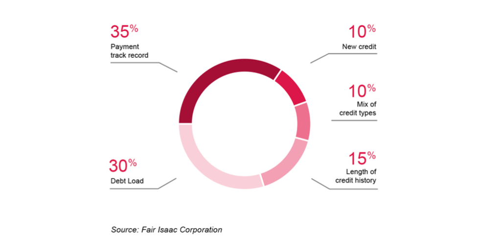 - Payment history and credit utilization make up 65% of your credit score